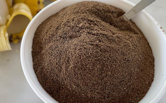 Secar en el horno o en una sartén y triturar, para utilizar como sustituto de harina y de cacao.